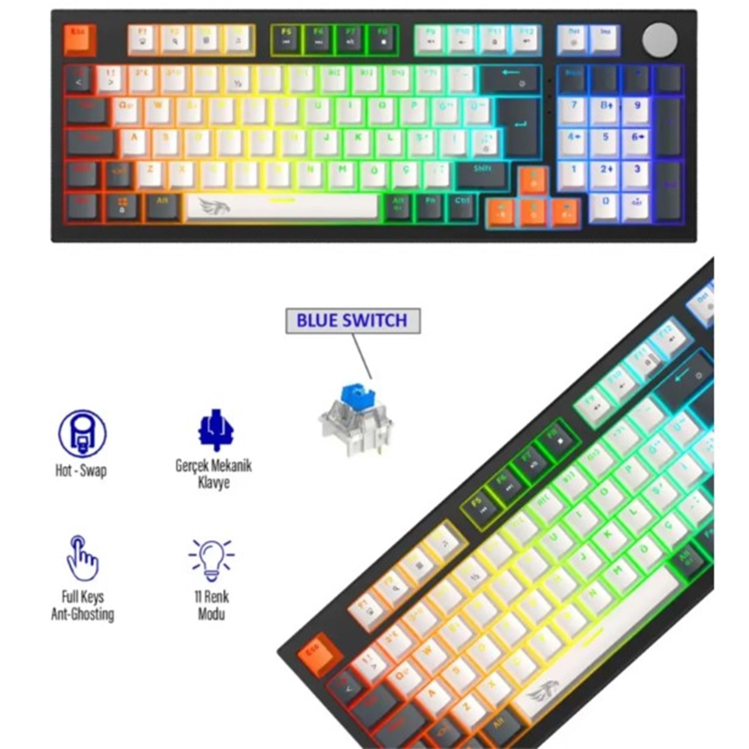 Strike Plus MK-96X2ABR Mekanik Işıklı Gamer Klavye Red Switch Beyaz Tuş siyah çerçeve