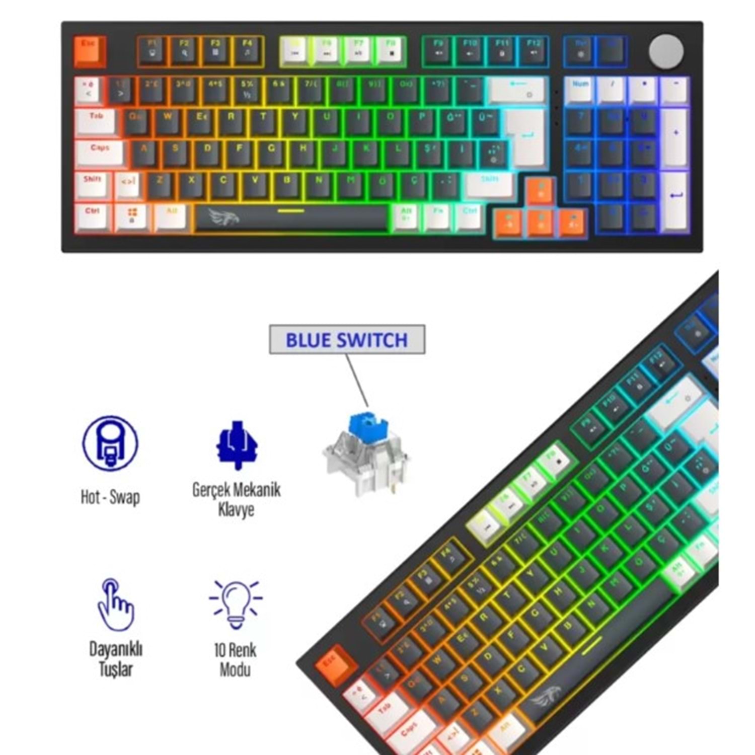 Strike Plus MK-96X2BAB Mekanik Işıklı Gamer Klavye Blue switch Siyah tuş Siyah çerçeve