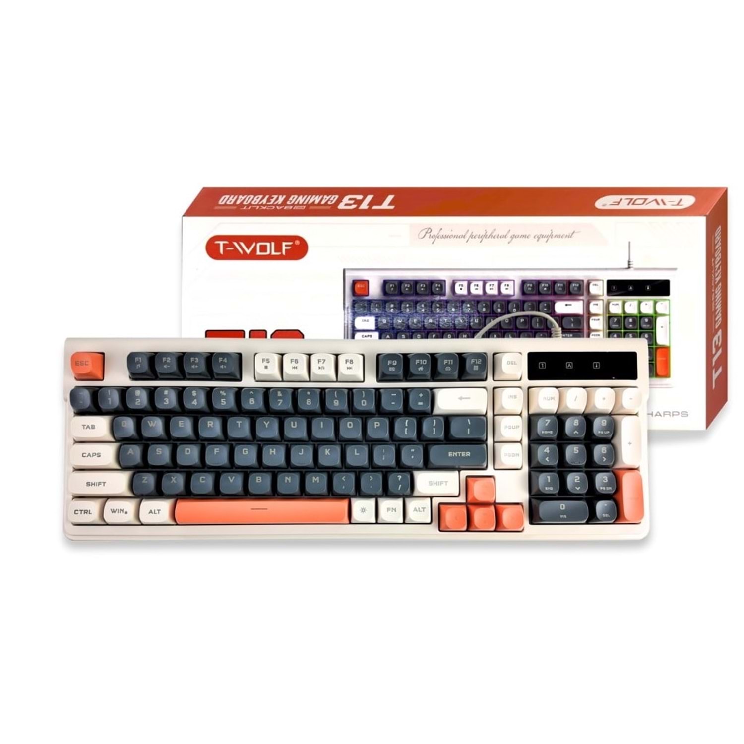 T-WOLF TÜRKÇE Q KLAVYE T13 TUŞLAR SİYAH ÇERÇEVE BEYAZ USB KABLOLU KLAVYE